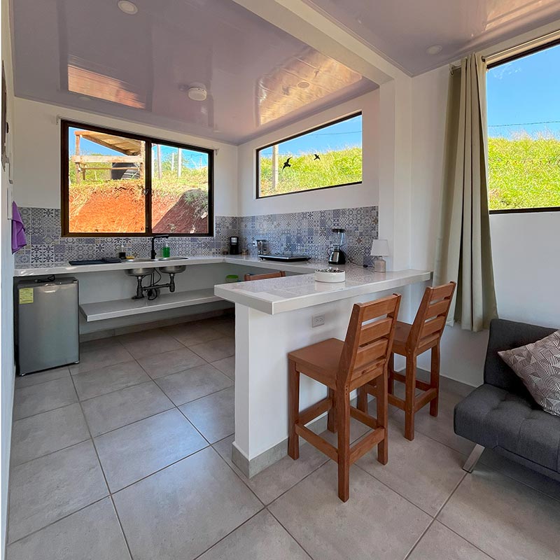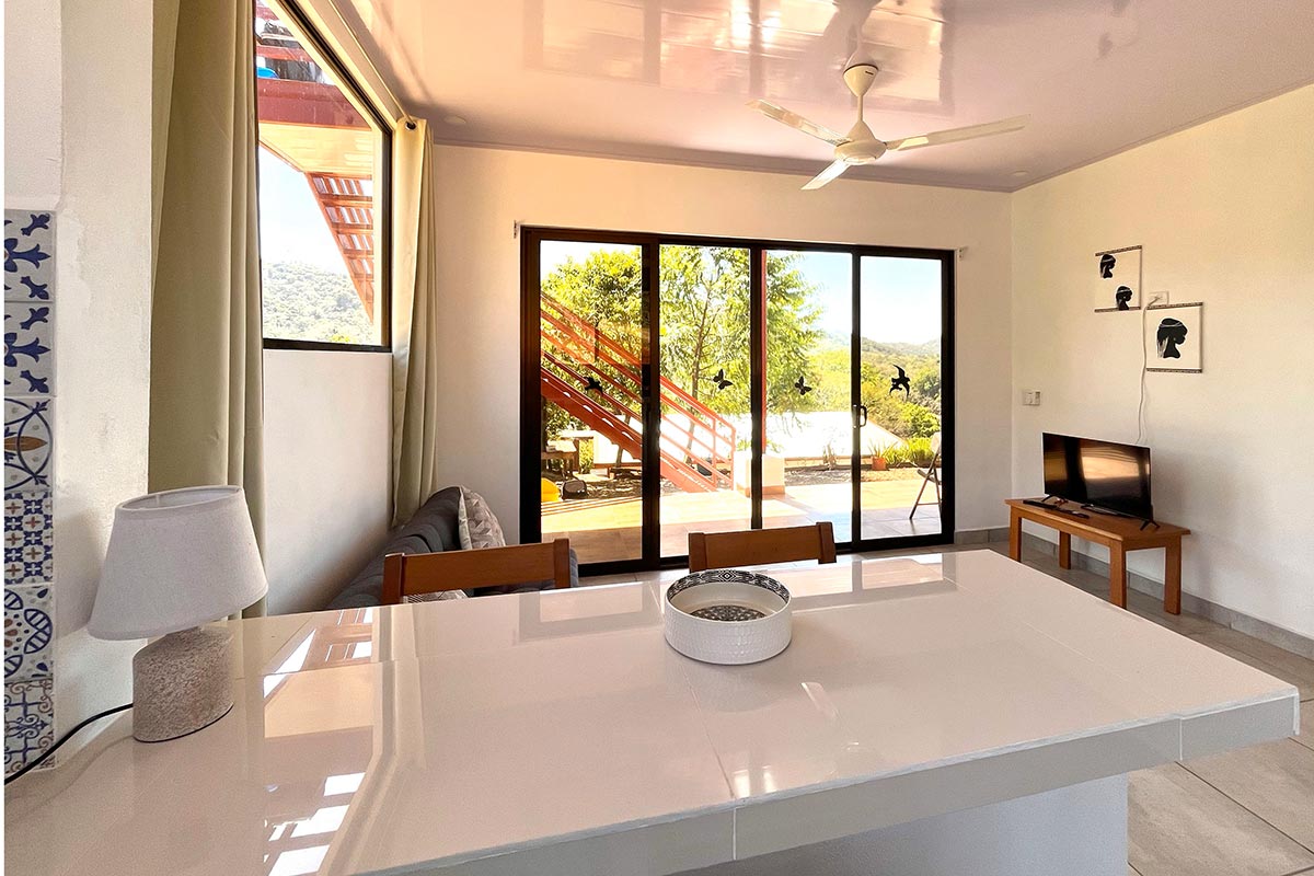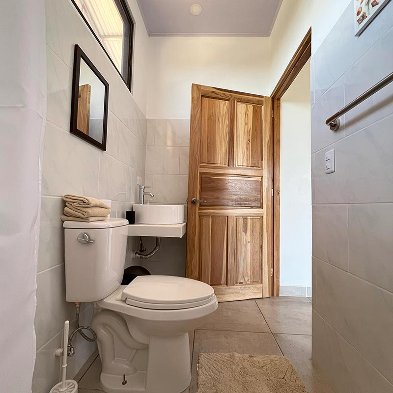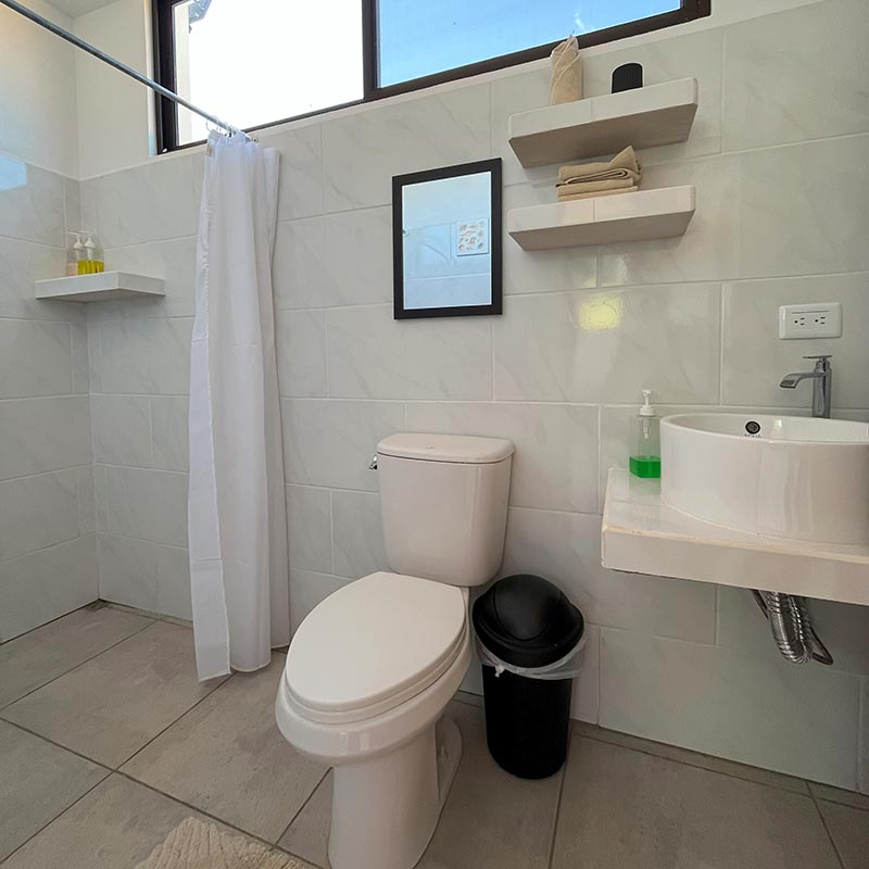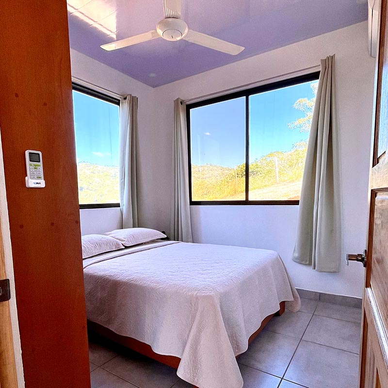 Each bedroom is equipped with air conditioning, and ceiling fans are provided in the living area and bedroom. Each bathroom is equipped with a hot-water shower. The first floor (GB: ground floor) apartment has a spacious terrace, while the second floor (GB: first floor) apartment has a balcony of the same size with a beautiful view of Río Ora and the surrounding mountains.